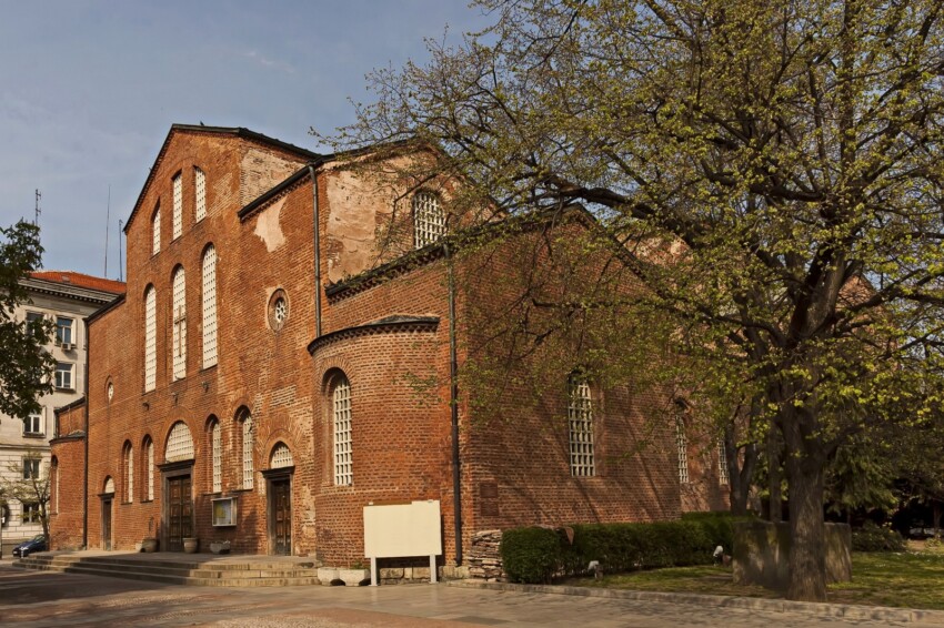 A pochi passi dalla Cattedrale Alexander Nevsky, la Basilica di Santa Sofia è l’edificio che ha dato il nome all’intera capitale bulgara. Costruita nel VI secolo durante il regno dell’imperatore Giustiniano I, è una delle chiese paleocristiane meglio conservate dei Balcani e uno dei rari esempi di architettura proto-bizantina al di fuori di Istanbul. La struttura a tre navate con absidi semicircolari e volte a botte in mattone romano ha subito secoli di trasformazioni — fu moschea per quattro secoli durante l’occupazione ottomana, perse i minareti con un terremoto nel 1858 e fu sconsacrata — ma ha recuperato la funzione di chiesa ortodossa dopo la liberazione bulgara.